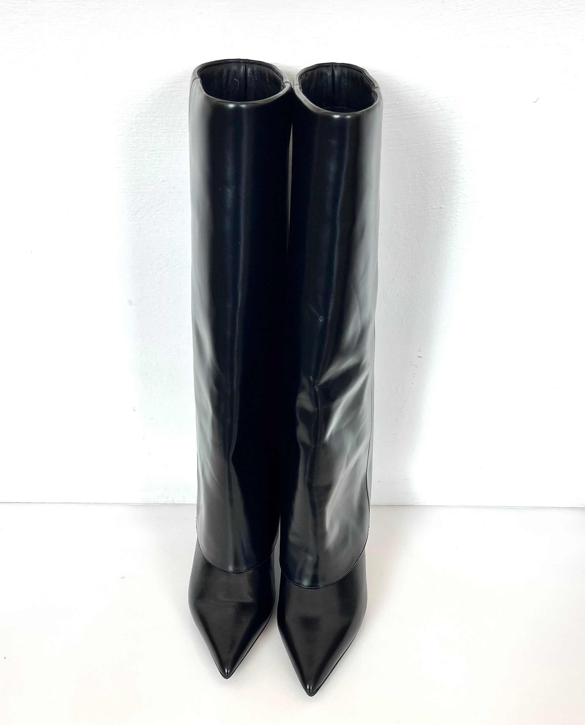 Lo stivale "Eva" in vera pelle nera presenta un design sofisticato con risvolto lungo e tacco a spillo di 7 cm, ideale per un look femminile e raffinato. La calzata comoda garantisce un comfort ottimale, rendendolo perfetto per chi cerca stile senza rinunciare alla praticità quotidiana. Tomaia in pelle fodera in tessuto.